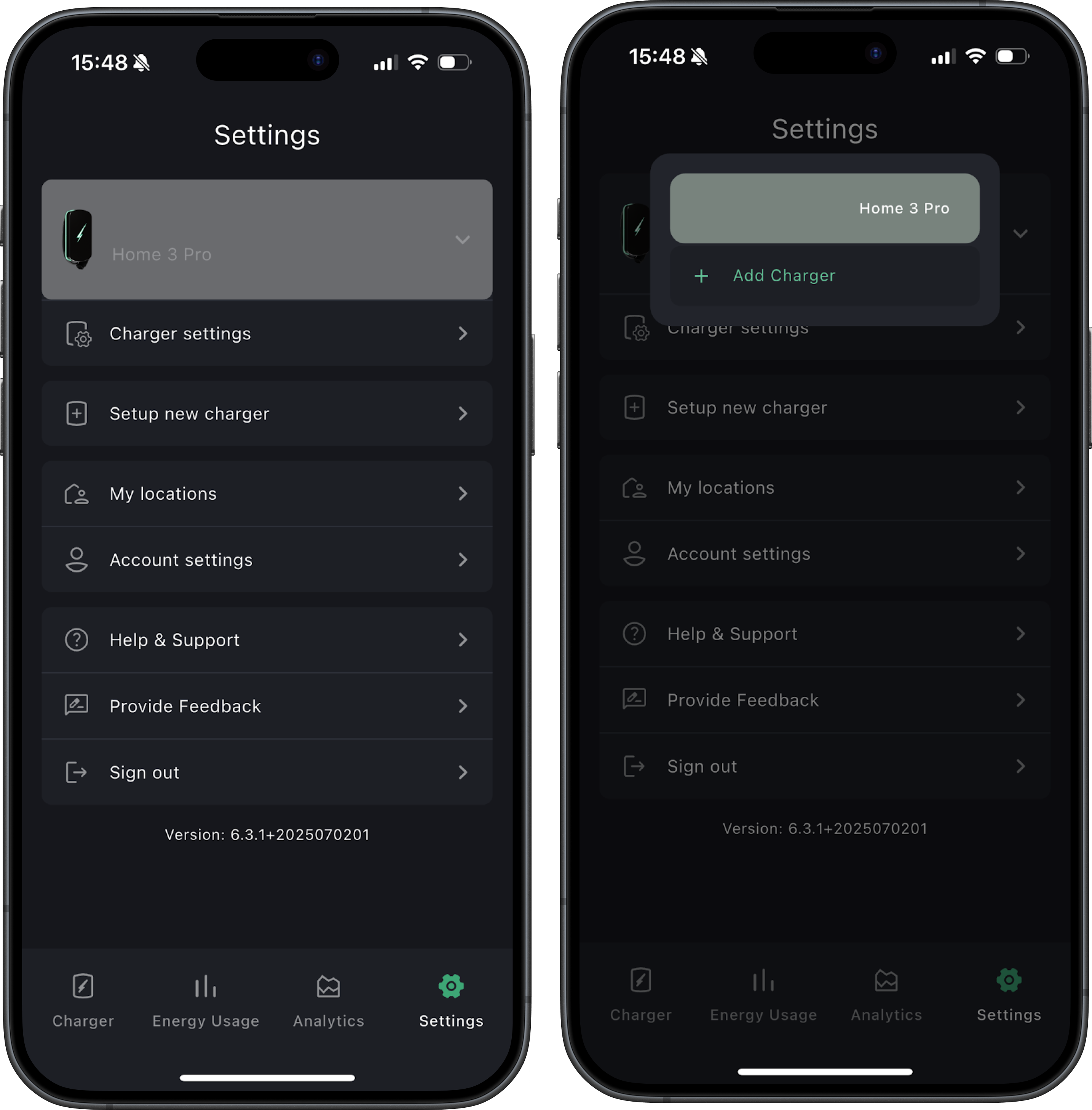 You can add additional chargers to your account. To do this, navigate to the settings menu in the app and tap on Add New Charger.